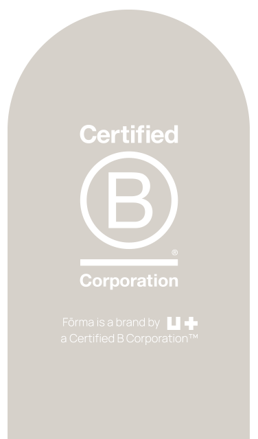 Het bedrijf achter ons merk Fōrma is U+. Als bedrijf mogen wij onszelf sinds eind 2022 een ‘Certified B Corporation™’ (B Corp™) noemen. Dit is een certificering voor bedrijven die zich inzetten voor een betere wereld met oog voor mens, milieu en maatschappij. Met de B Corp™ certificering behoort U+ tot een wereldwijd netwerk van inspirerende organisaties die bijdragen aan een duurzame en verantwoorde samenleving zoals Patagonia, Dopper en Ben & Jerry’s. Een waardevol collectief dat toejuicht om zelf onderdeel van de verandering te zijn.